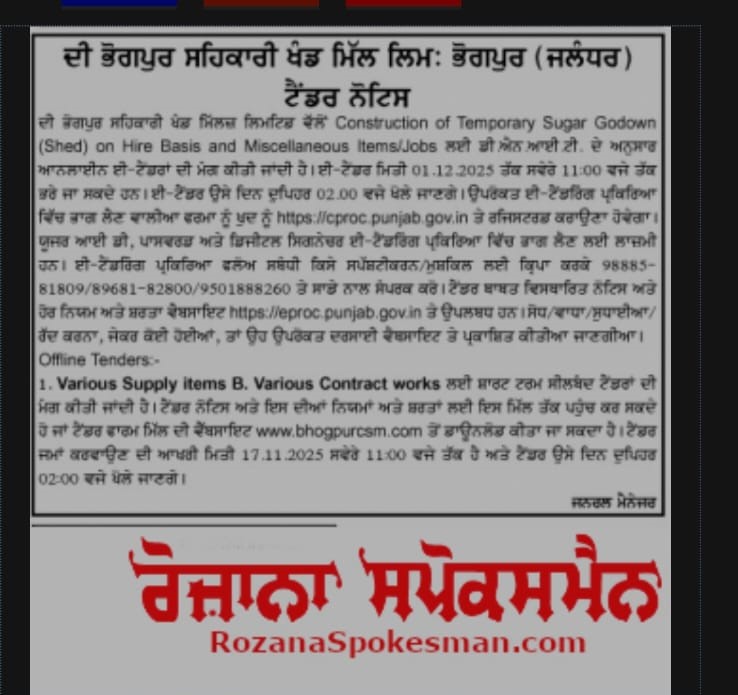Newspaper Cutting ( Rozana Spokesman) 28.11.2025 |